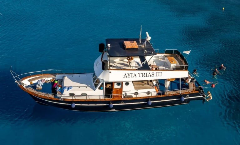Discover the stunning waters of Ayia Napa and Protaras in Cyprus with our unforgettable boat trips. Enjoy breathtaking views, crystal-clear waters, and relaxing cruises. Join us for an adventure and create lasting memories.