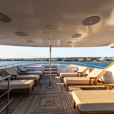 Ocean Queen, is the ideal venue for a wide range of private events such as weddings, birthdays, team-building activities, baptisms, and exclusive parties. Constructed in 2021, this modern oasis on the water features a professional kitchen, two fully stocked bars, four restrooms, and enough space to comfortably host up to 150 guests across two decks. The VIP deck offers additional luxury with a jacuzzi, sun loungers, and a cozy seating area.