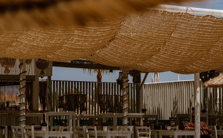 Pagida Seaside, located on Agia Thekla Beach in Sotira, is a charming beach bar adorned in blue and white, exuding an island ambiance reminiscent of the Cyclades.
